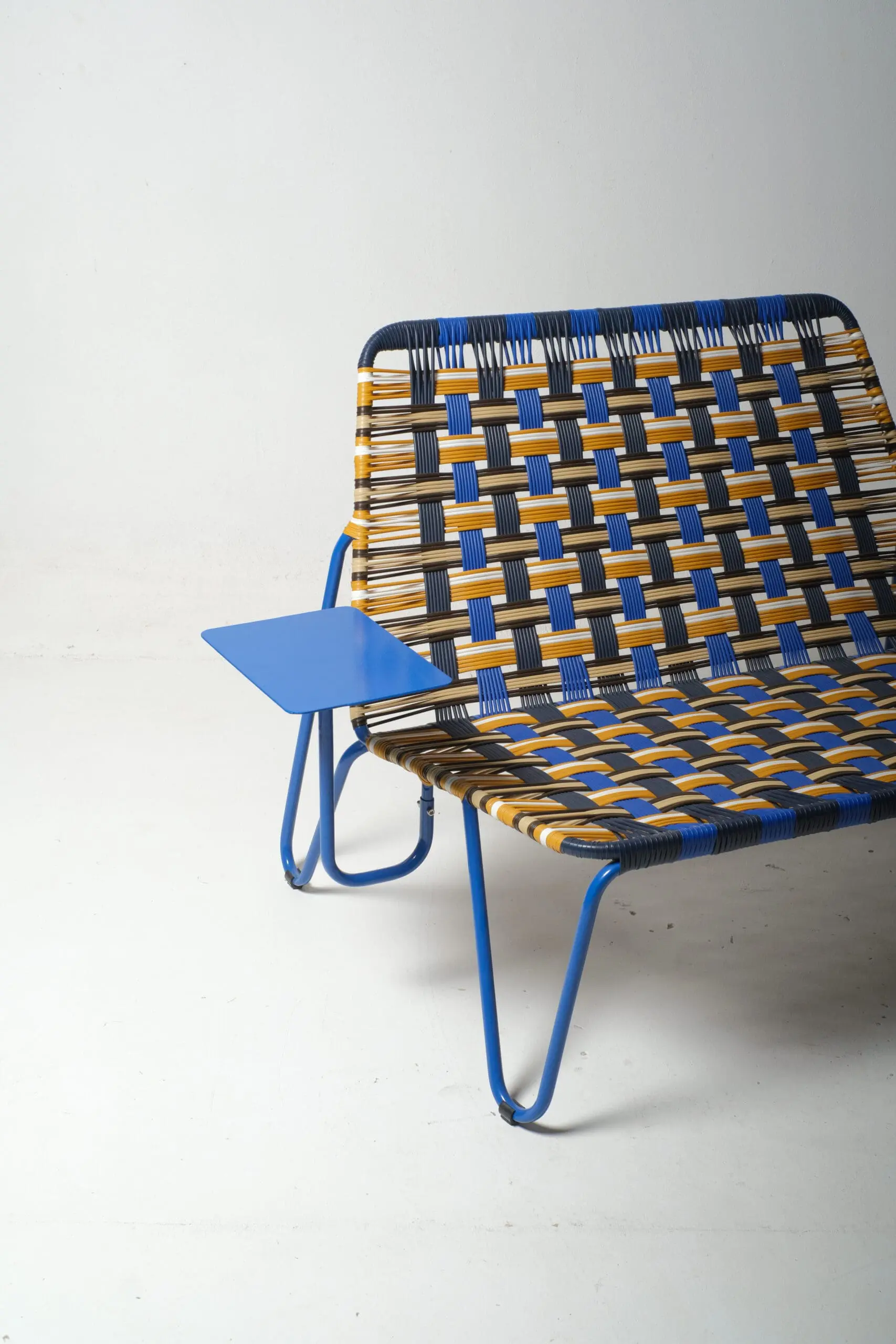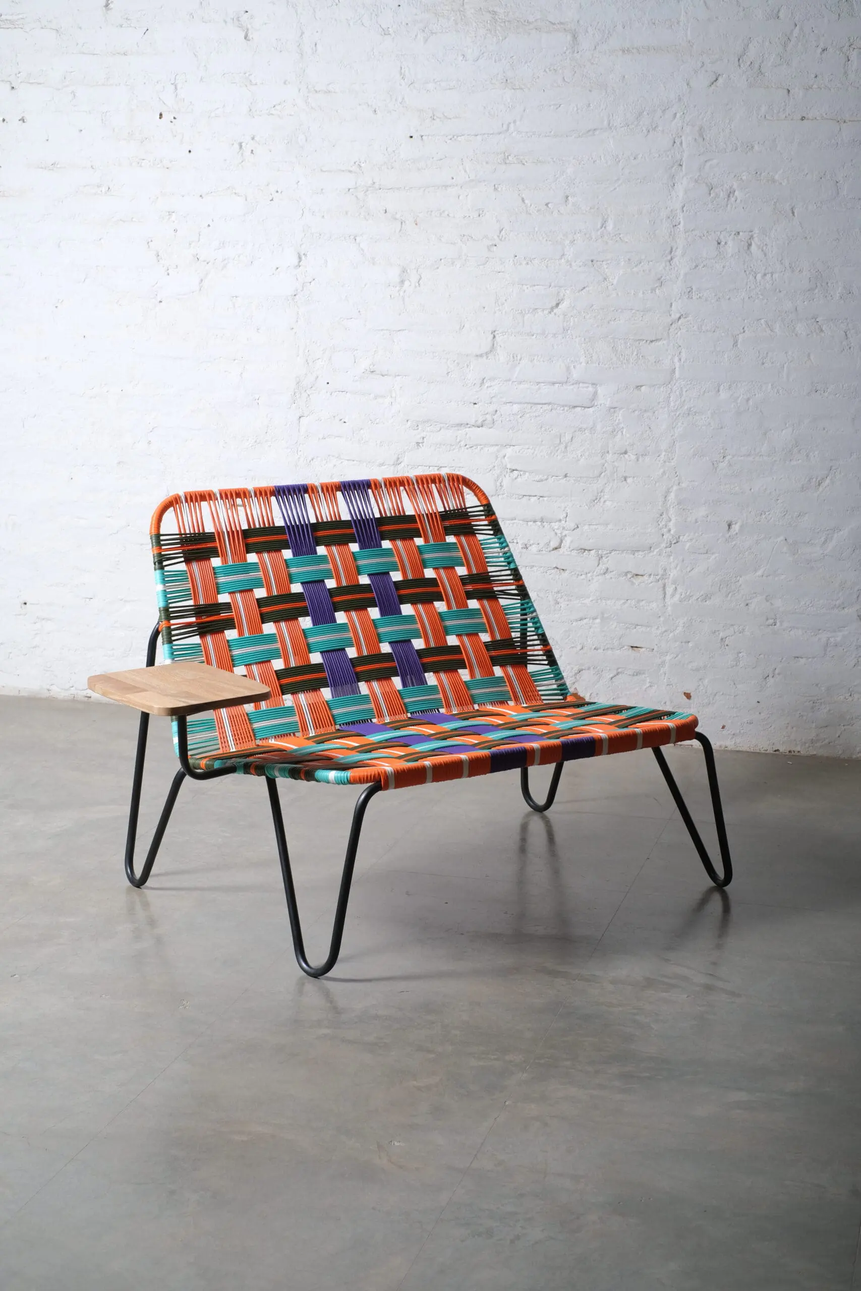 La Banca Prii es una pieza tipo lounge diseñada para disfrutar del descanso y la conversación con estilo. Este love seat de dos plazas incorpora una mesita lateral integrada, ideal para apoyar libros, bebidas o pequeños accesorios, aportando funcionalidad sin renunciar al diseño.