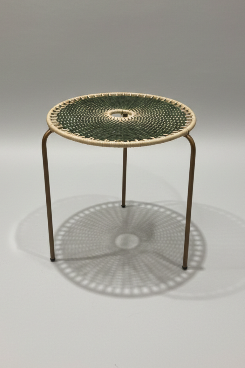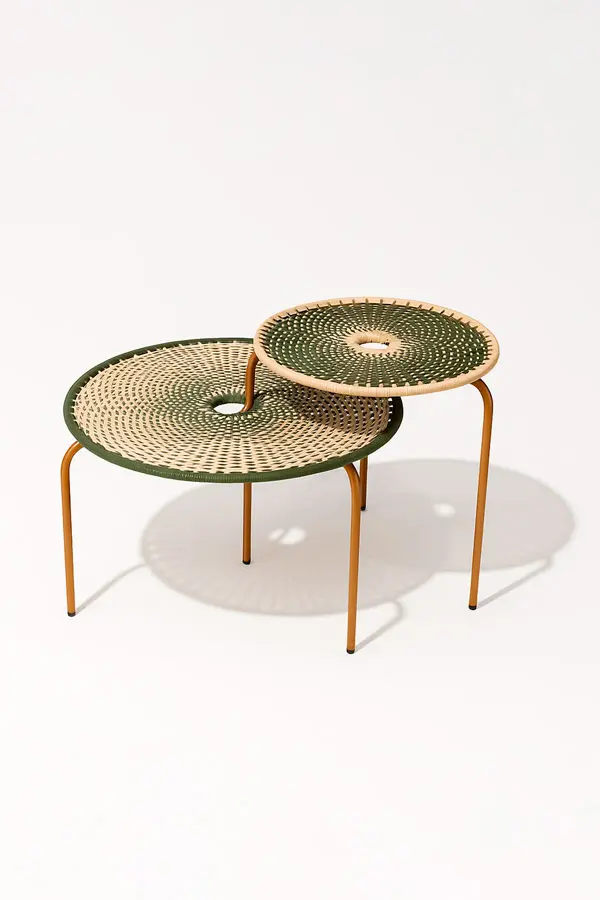 Mesa de centro Bellavista de 50 cm de diámetro, tejido artesanal en cuerda de PVC con estructura en varilla de acero recubierta en pintura electrostática en polvo