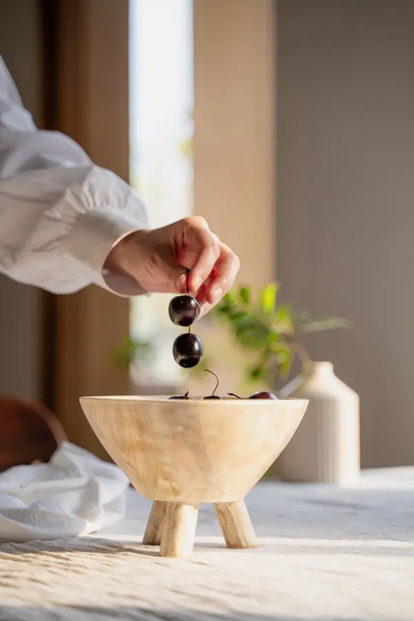 El Bowl Acacia es una pieza artesanal elaborada en madera de acacia blanca, destacando por su diseño natural y líneas talladas a mano que aportan un carácter único a cada unidad. Su tono blanco y acabado orgánico lo convierten en el complemento perfecto para espacios minimalistas o decoraciones que buscan calidez y autenticidad.