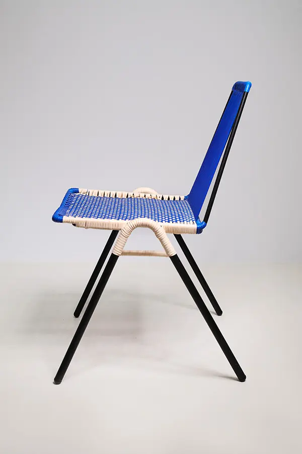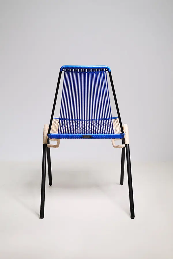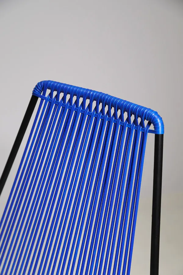 La Silla artesanal Finca I Lite es una pieza que combina diseño moderno y tradición artesanal. Fabricada con estructura en acero negro recubierta en pintura electroestática, destaca por su resistencia y acabado elegante. Su asiento y respaldo están tejidos con la técnica entamborao, en una combinación única de azul y curuba pastel, aportando frescura y personalidad a cualquier espacio.