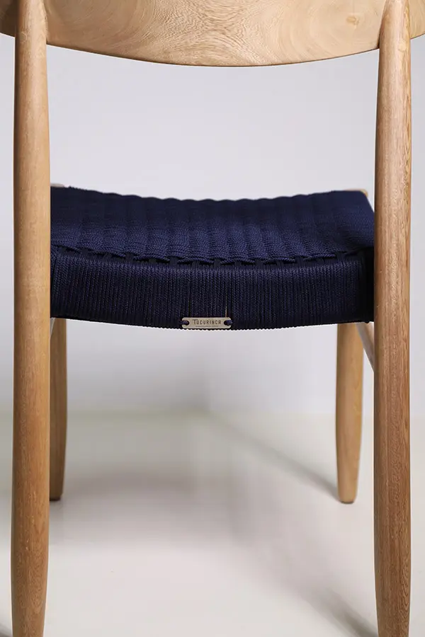 La Silla Pao Cabuya Azul Oscuro es una pieza artesanal que fusiona la calidez de la madera roble con un tejido en cabuya trabajado a mano. Su diseño atemporal aporta equilibrio visual y calidad, convirtiéndola en una elección ideal para quienes valoran lo natural y auténtico.