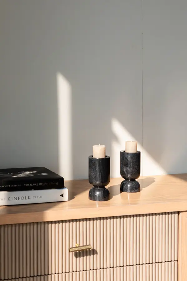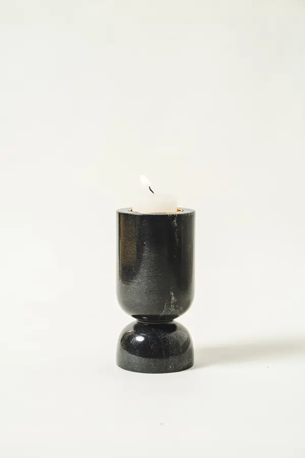 El portavelas liso de mármol negro artesanal es una pieza exclusiva que combina sobriedad y elegancia con el valor de lo hecho a mano. Esculpido en mármol natural, cada portavelas presenta vetas únicas que resaltan la autenticidad de la piedra.