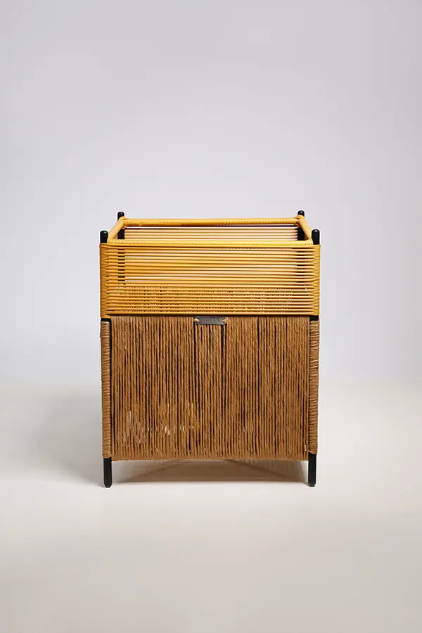 Nuestros acabados en mimbre son tratados con barniz transparente para darle mayor resistencia al producto en condiciones exteriores. Este producto es recomendado para interiores, pero puede ser utilizado en exterior estrictamente bajo techo, con precaución de no mojarlo, ya que el agua puede debilitar el tejido. La protección de los rayos UV debe ser la mayor posible. La limpieza debe realizarse con un trapo seco.
