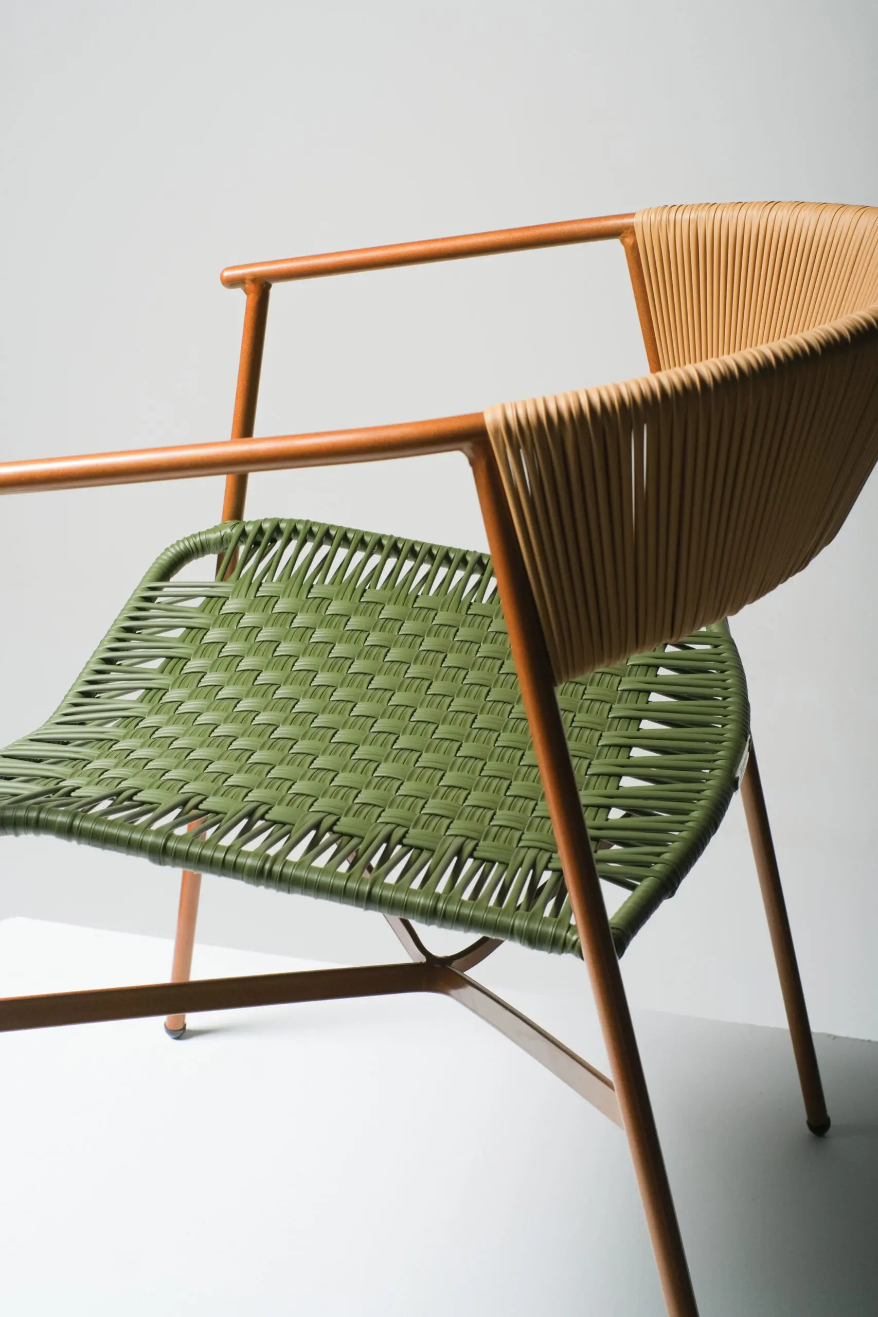 Fabricada con materiales de alta calidad, cuenta con estructura de acero pintado y un entrelazado en PVC, ambos tratados con protección UV, lo que garantiza durabilidad, resistencia al sol y un mantenimiento sencillo.