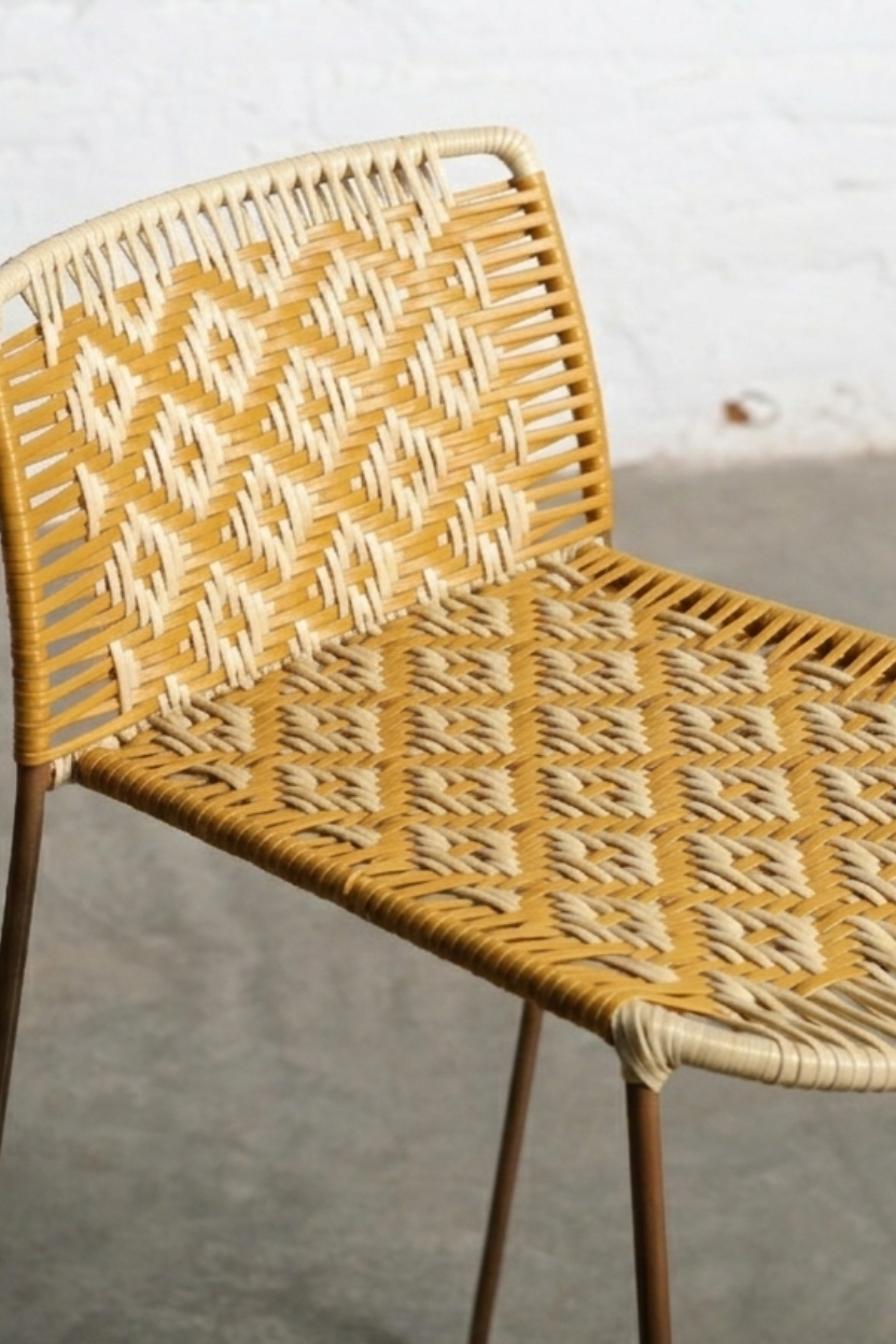 El taburete Cúbico es una pieza moderna y funcional que combina una estructura metálica liviana con un respaldo bajo y tejido artesanal. Perfecto para barras, cocinas abiertas o espacios comerciales, destaca por su forma limpia y geométrica, y por la calidad de su tejido hecho a mano en fibras sintéticas.