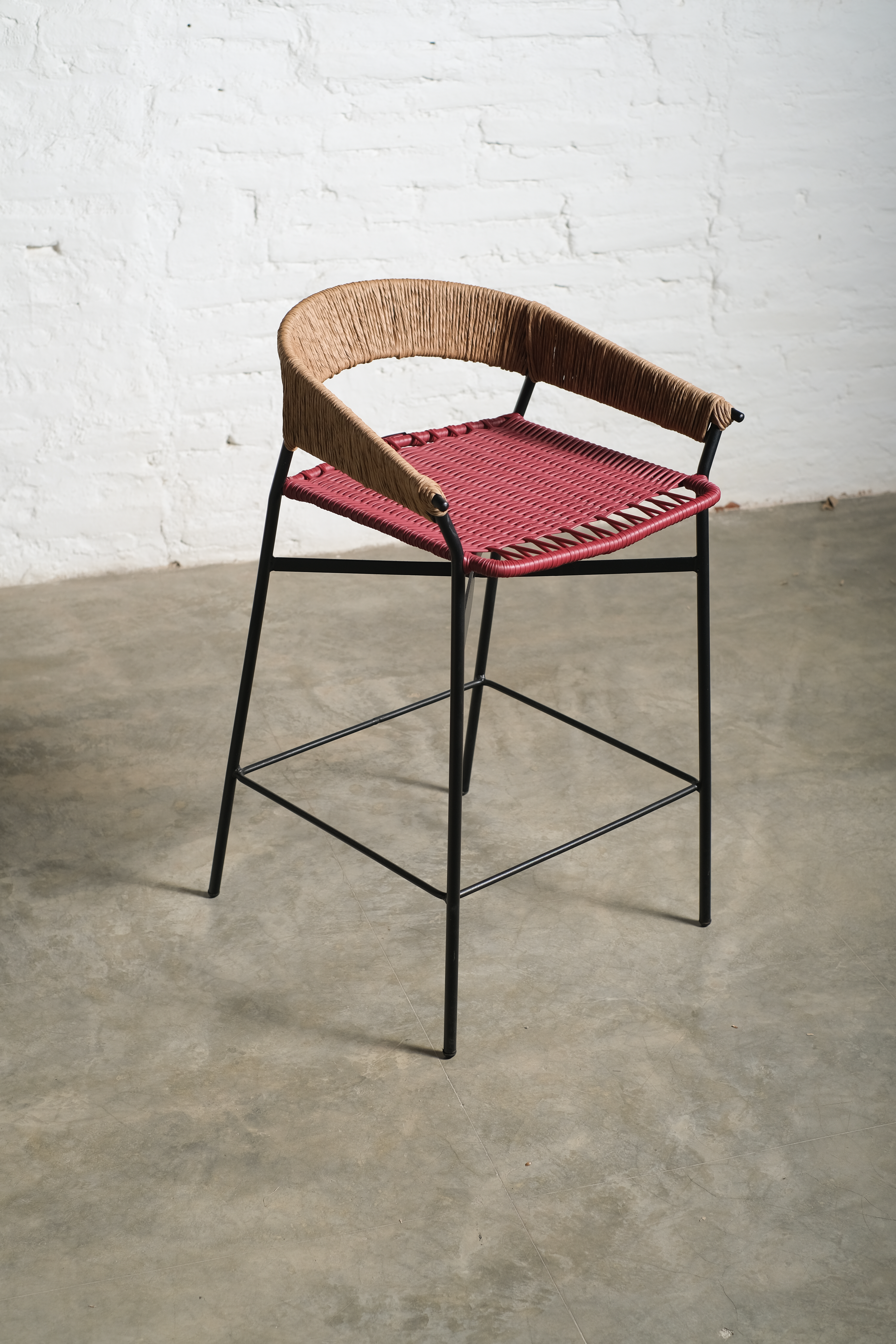 Fabricado con estructura de acero pintado y tejido de PVC, este taburete está diseñado para resistir el uso diario y las condiciones exteriores. Tanto la estructura como el tejido cuentan con protección UV, garantizando durabilidad, estabilidad del color y fácil mantenimiento.