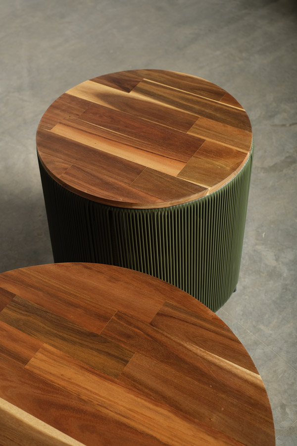 La tapa, elaborada en tablero alistonado de madera teca, añade calidez y un acabado natural que la convierte en el centro de atención de cualquier espacio. Recomendada tanto para interior como exterior cubierto, esta mesa es perfecta como mesa de centro, auxiliar o decorativa en salones, terrazas o jardines.