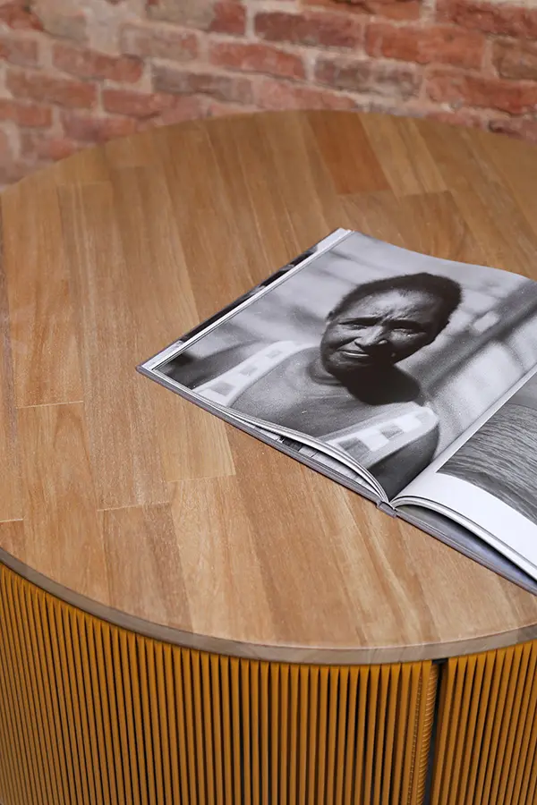 La mesa Tambor 75 cm es una pieza artesanal que combina madera y tejido en un diseño elegante y funcional. Fabricada con estructura en acero recubierta en pintura en polvo y tapa en tablero alistonado de roble o acacia, ofrece resistencia y calidez.