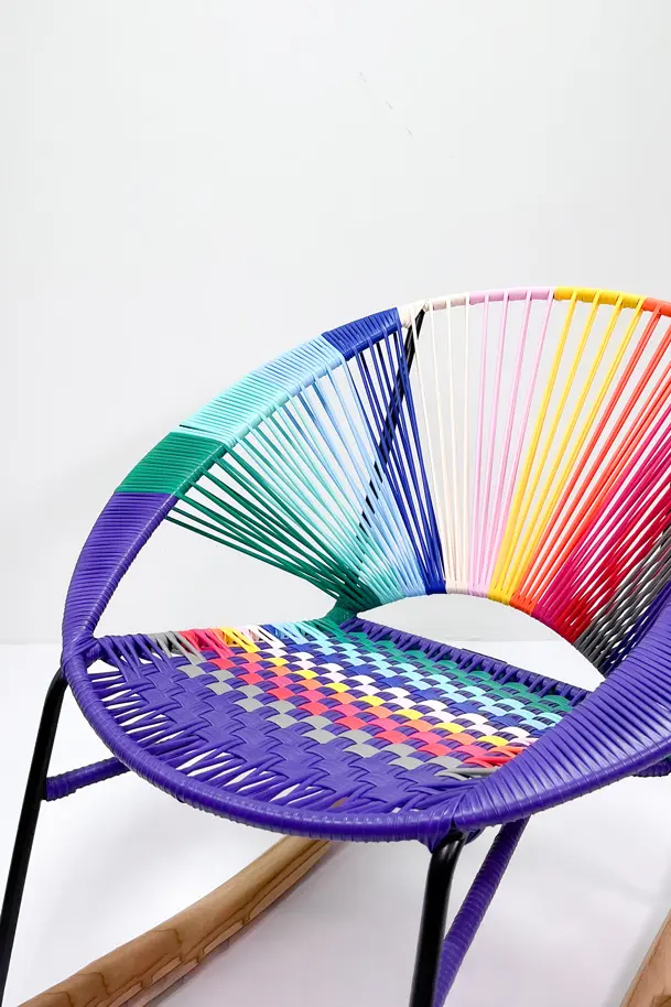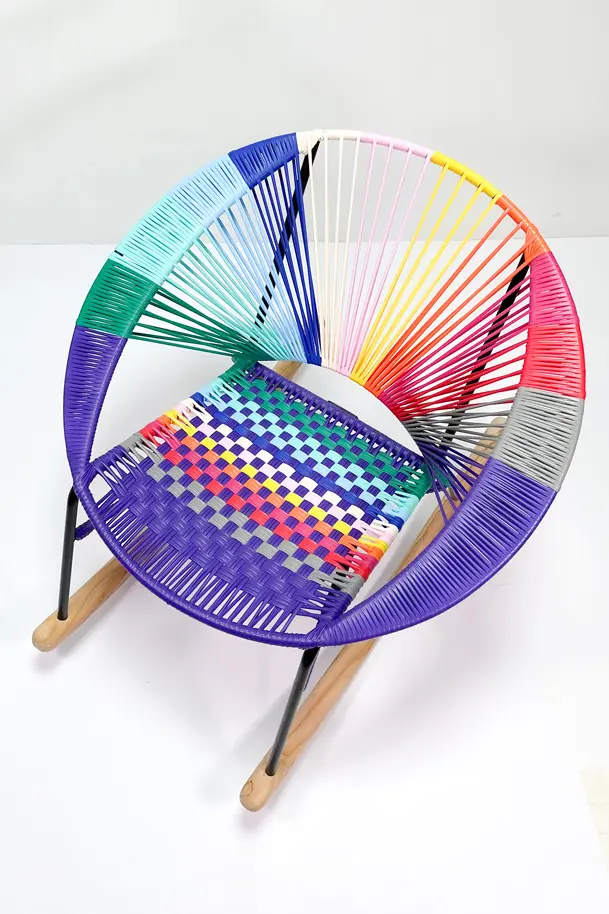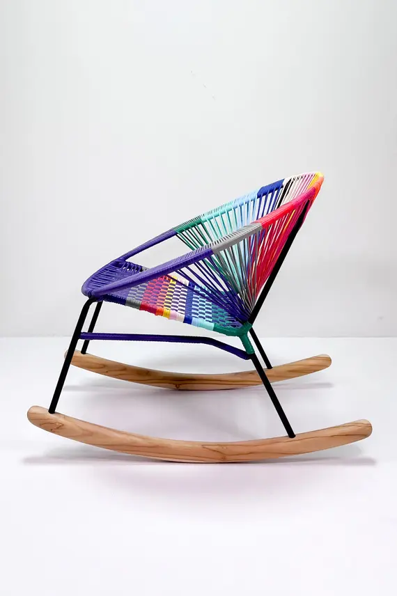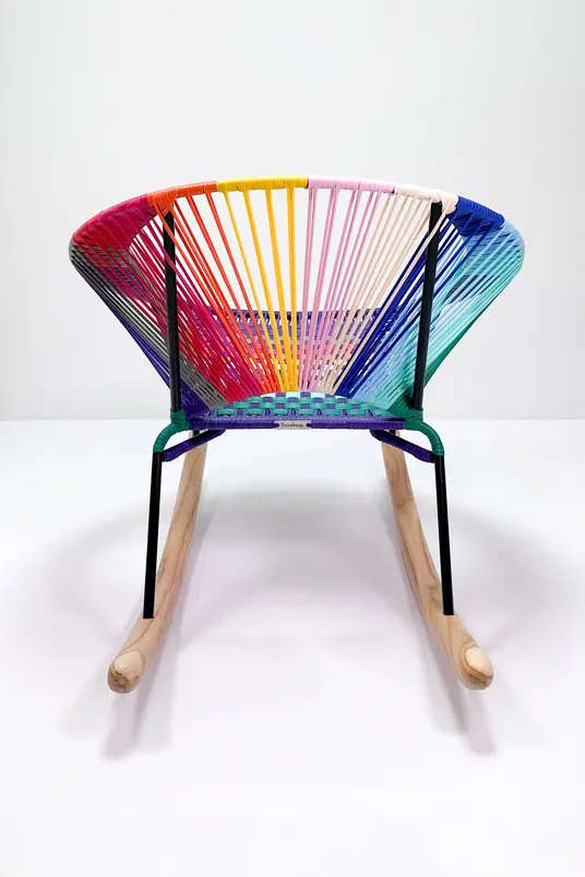 Con su combinación colorida estilo Colorinche, Tres Mecedora es ideal para salones, terrazas cubiertas o rincones de lectura. Los brazos tejidos aportan un acabado artesanal exclusivo, perfecto para quienes buscan diseño y funcionalidad en una sola pieza.