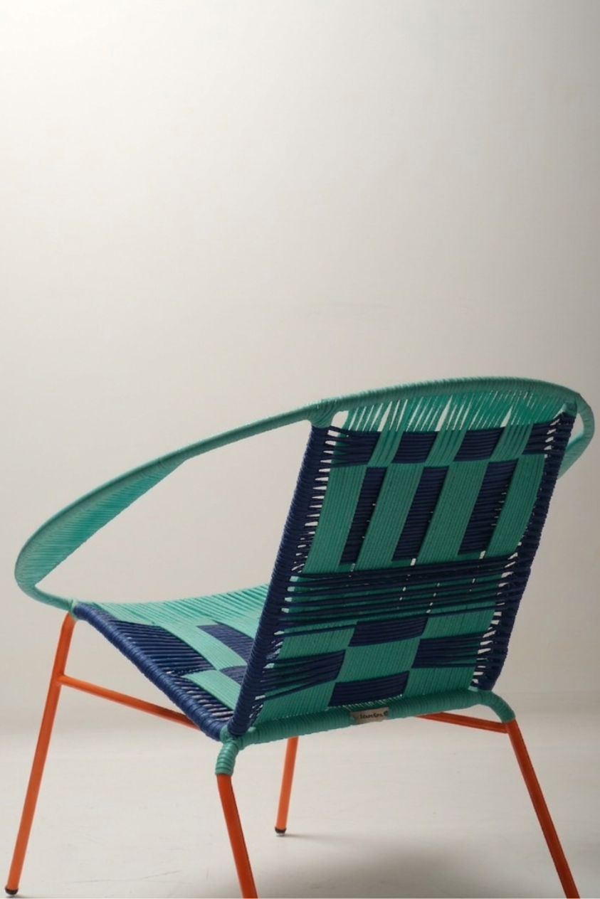 La silla tipo butaca Tucurinca Icono es un clásico del Caribe reinventado en clave artesanal. Su diseño circular, tejido a mano en tonos turquesa y azul, junto con su estructura en color naranja y brazos tejidos, la convierten en una pieza única que aporta color, frescura y autenticidad a cualquier ambiente.