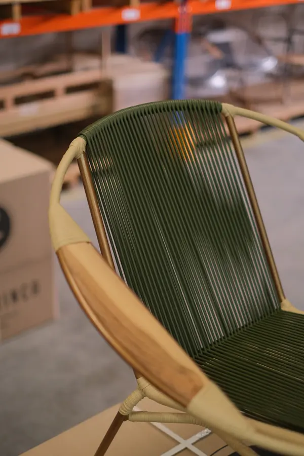 La mecedora Tucurinca sólido artesanal combina tradición y diseño moderno con una estructura en cobre y un tejido de cordón tubular sólido que garantiza mayor resistencia a los rayos UV. Su acabado en verde militar con detalles en beige aporta elegancia y versatilidad, convirtiéndola en una pieza ideal para dar carácter a cualquier espacio.