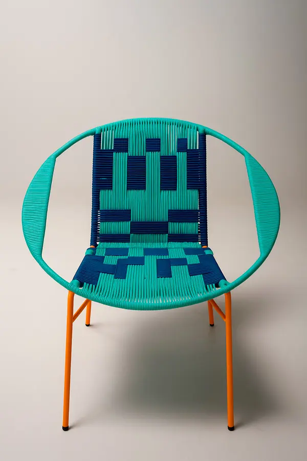 Silla artesanal Finca I curuba pastel y azul para interior o exterior